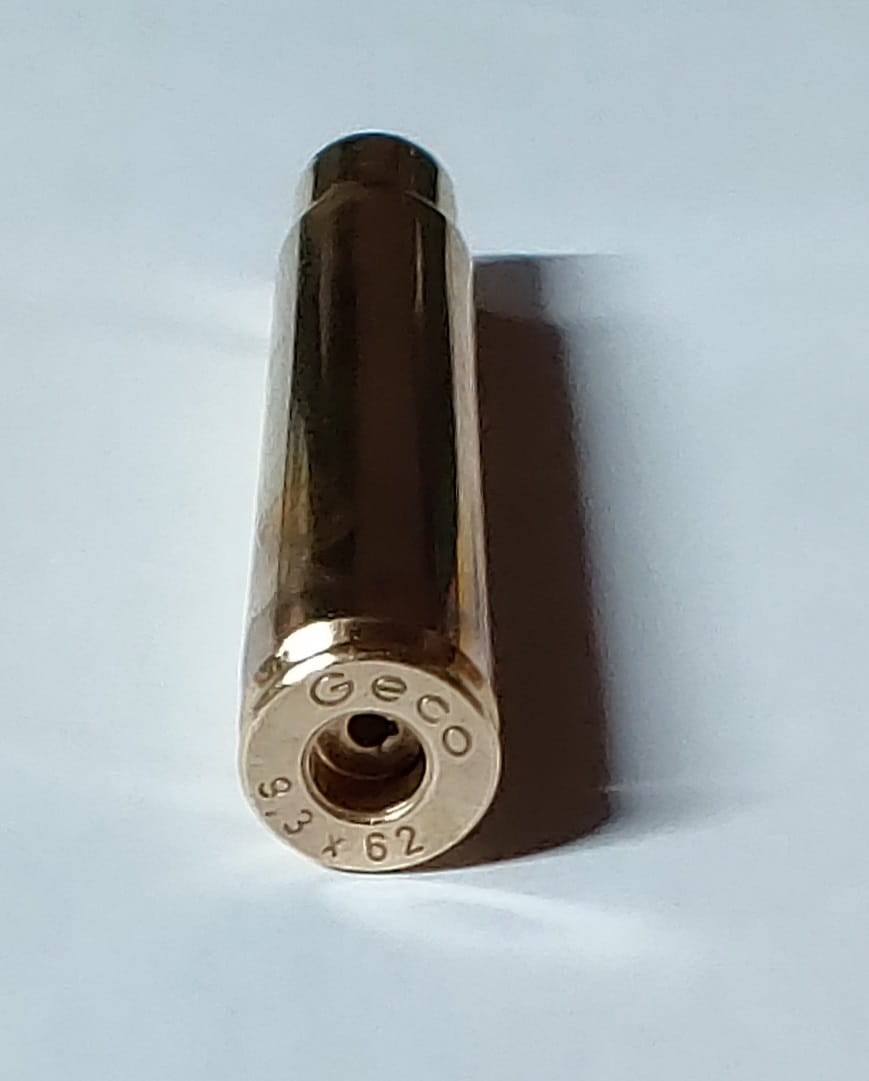 Once fired brass cases in 9,3x62 caliber made by Geco.